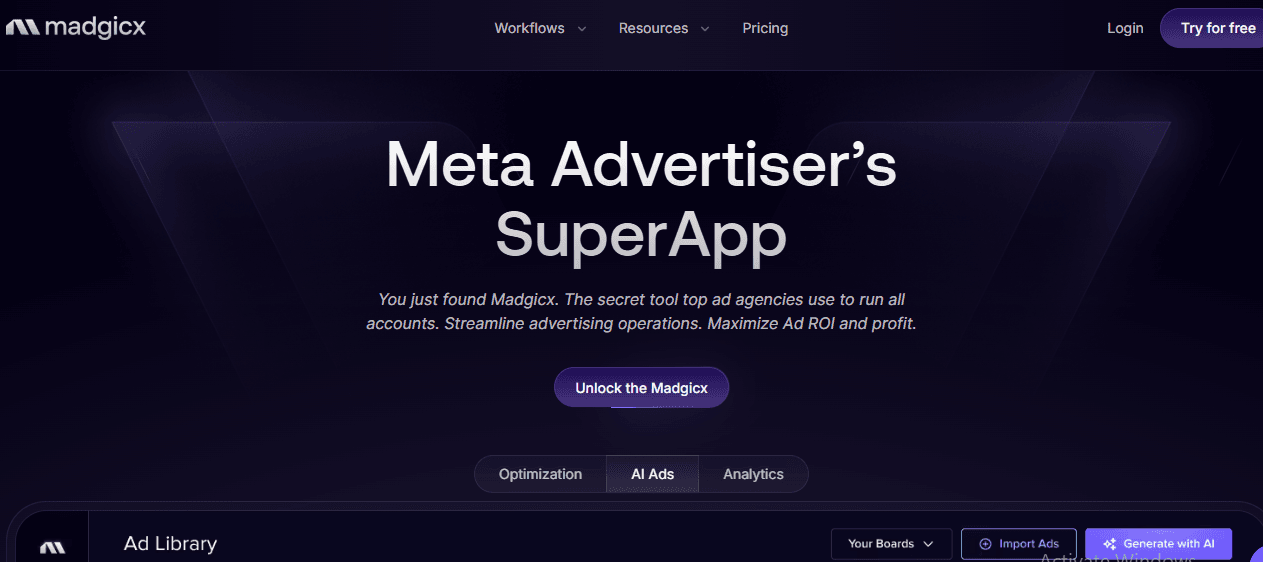 Madgicx is an all-in-one AI-driven platform designed to streamline and enhance the ad creation process for Meta platforms, including Facebook. Trusted by over 200,000 advertisers globally, Madgicx empowers mobile game developers to craft high-performing ad creatives swiftly and efficiently.