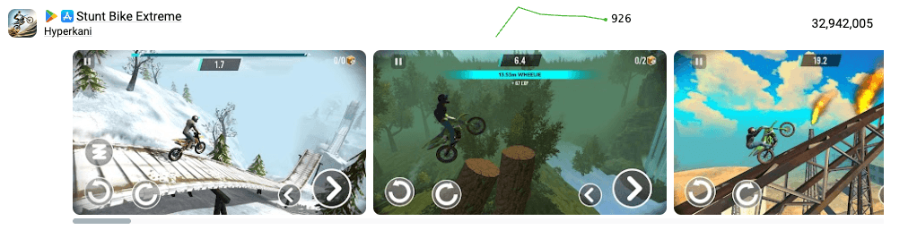 However, this list is ranked according to trending games, which, according to AppMagic, is based on the green trendline, which shows the app’s performance in the Top Charts over the chosen period. The left side indicates the app's starting position in the rankings, and the right side indicates its current position.