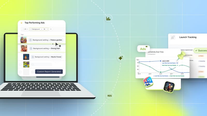 Custom Dashboards and Reporting: Build dashboards around your specific KPIs and stakeholder needs. Create automated reports that show how creative decisions impact ROAS across all your apps and campaigns.
