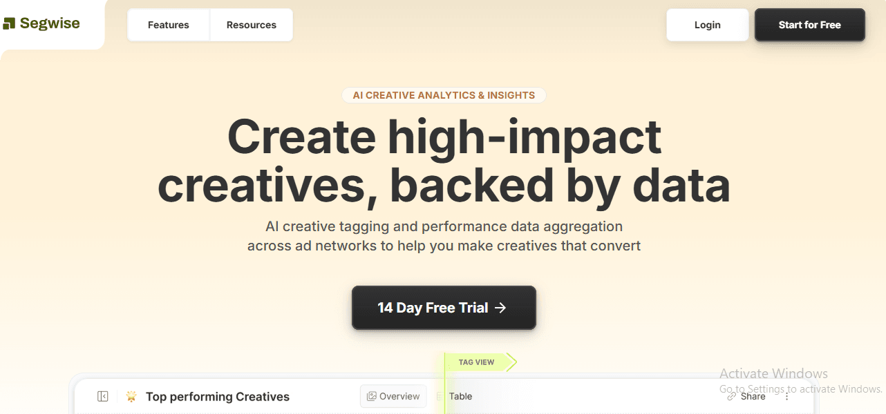 Performance Tracking with Immediate Actionable Insights: Segwise offers performance tracking, delivering immediate insights into your ad campaigns' performance. This feature identifies underperforming areas and makes necessary adjustments immediately.