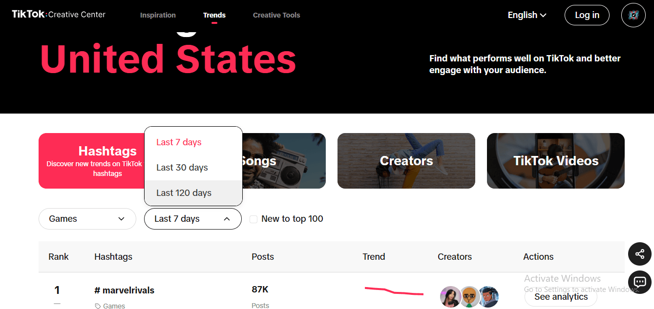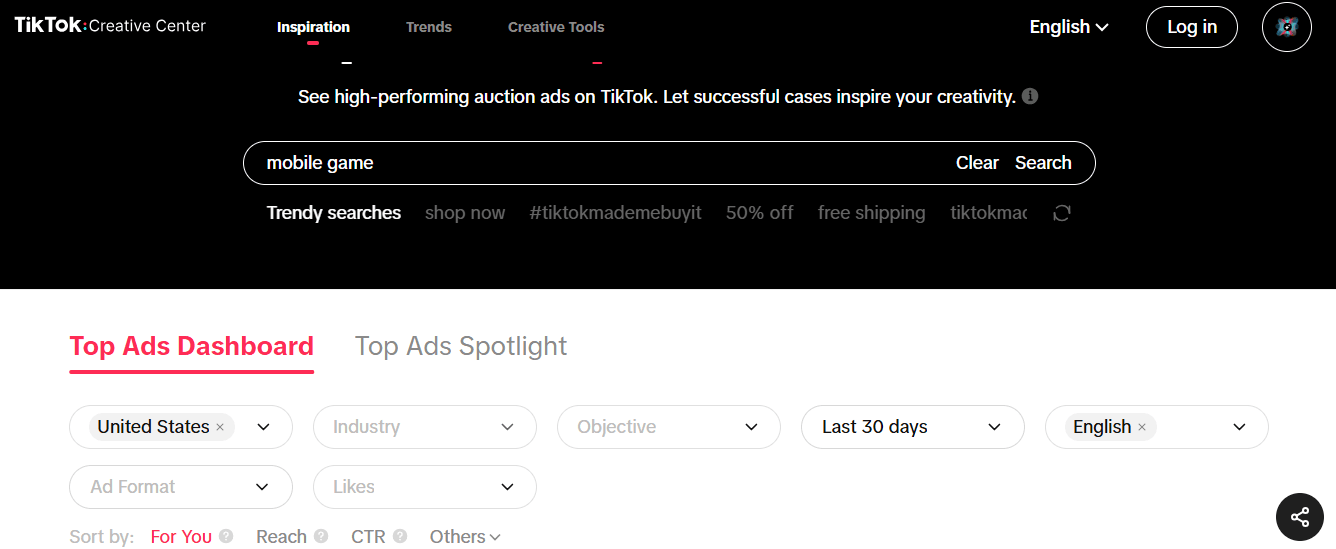 TikTok trends change fast, and keeping up with popular hashtags, sounds, and ad formats can mean the difference between an ad that flops and one that goes viral. The Creative Center’s Trending Section keeps you updated on what’s capturing players’ attention so you can align your ads with what’s currently driving engagement.