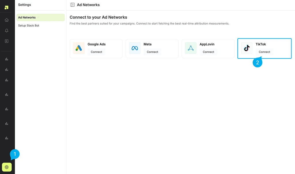 Locate TikTok under the available ad networks and click "Connect."